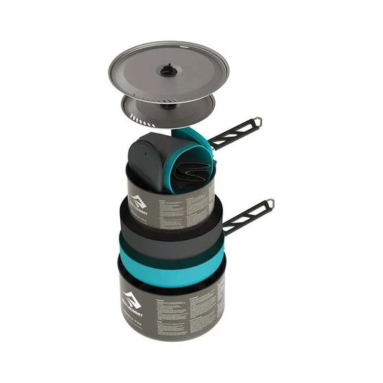 - Two person set includes: 1.7L AlphaPot, 2.7L AlphaPot, 2 x DeltaLight bowls, 2 x Insul Mugs