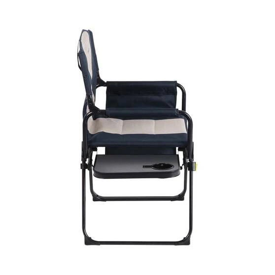 The insulated built-in cooler bag will keep your bevvies cold, or it doubles as a storage bag keeping everything on hand. This clever design packs down into a quarter of the size into a clever briefcase-style flat fold, with an integrated carry handle to make transporting and storage that little bit easier again. A seriously smart investment, this premium DuraLite™ Directors Chair will be one to love for years of adventures.